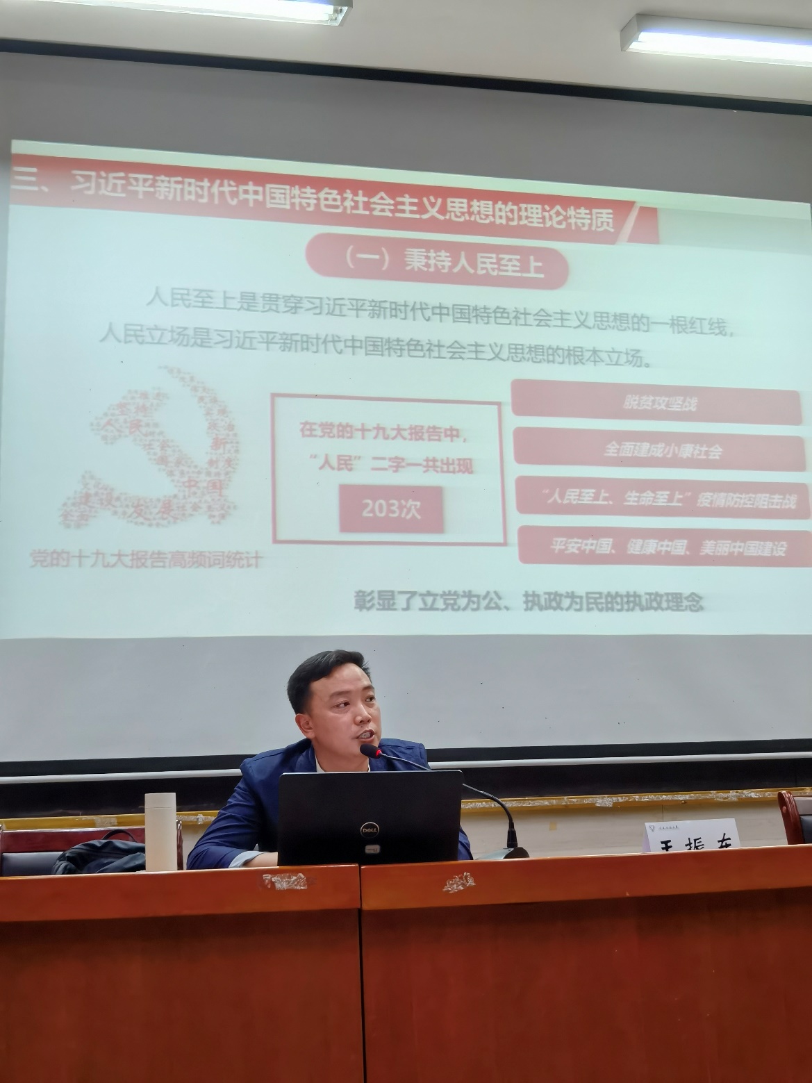 马克思主义公司王振东老师带领全体发展对象学习了“习近平新时代中国特色社会主义思想”确立了新的历史方位,中国特色社会主义进入新时代,十九届六中全会强调了“两个确立”,确立习近平同志党中央的核心、全党的核心地位,确立习近平新时代中国特色社会主义思想的指导地位。
