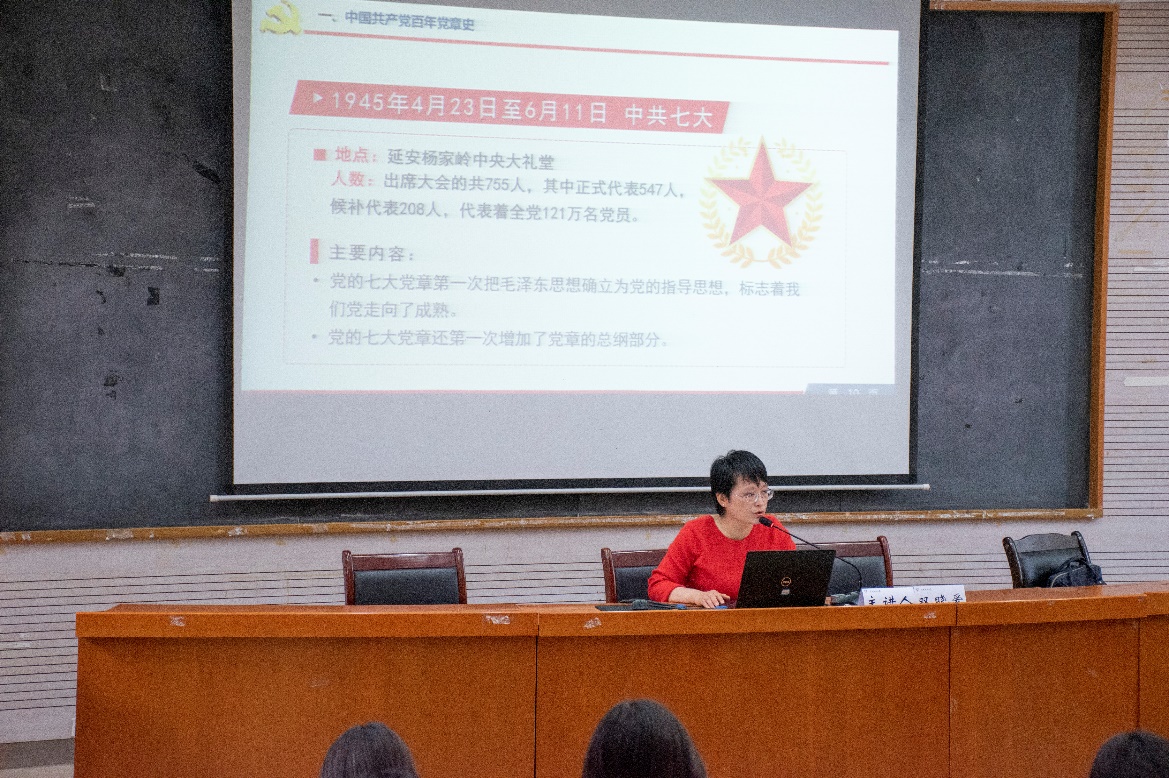 马克思主义公司双晓爱老师从“牢固树立党章意识,争取成为合格党员”进行了专题辅导,党章就是党的根本大法,是全党必须遵循的总规矩,全体发展对象要把学习贯彻党章作为学习贯彻党的十九大精神的重要内容,作为推进“两学一做”学习教育常态化制度化的重要举措。