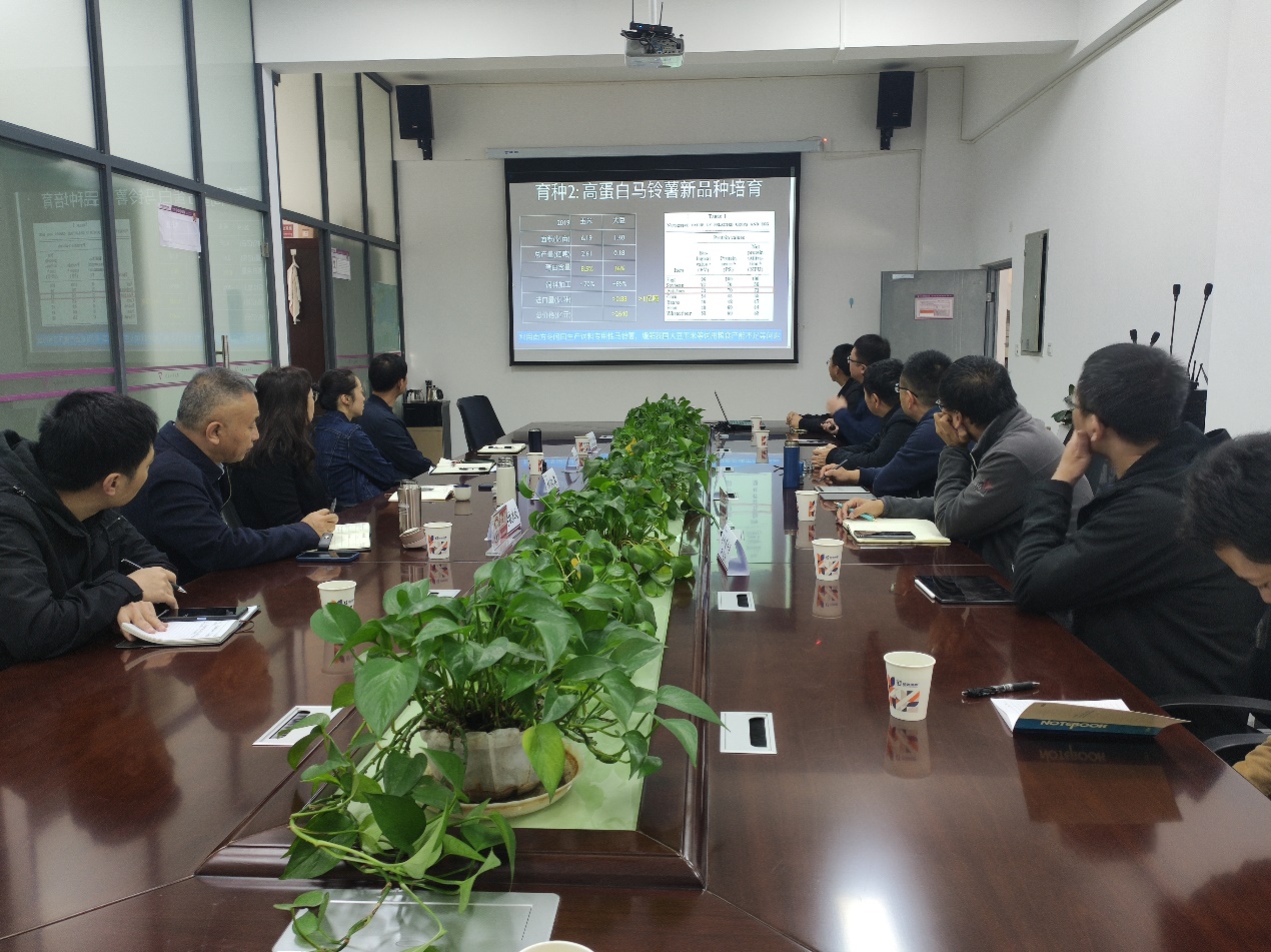 会议最后,郝淑美副董事长表示公司高度重视马铃薯科学研究院的建设发展,将全力支持研究院开展工作,也希望马铃薯科学研究院能够进一步聚焦优势、凝练特色,产出更多高水平科研成果;在着眼于重大基础问题的研究下重点攻关,打造精锐的人才队伍,提升平台层次,营造高水平研究学术氛围,为全面扎实推动乡村产业、人才振兴,服务公司新时代高质量发展作出更大贡献。