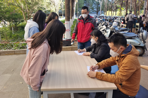在面临突如其来的疫情,各班班委,团委员工会工作人员第一时间组建起防疫志愿者队伍,帮助组织核酸检测,统计核酸检测情况,登记宿舍楼外出情况,以实际行动践行员工工作者的初心使命,为公司疫情防控贡献力量。