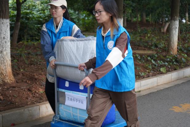 公司、宿舍、路边都有生科志愿者们的身影,他们穿着显眼的蓝色马甲,不惧风寒、不辞辛苦,热情地为每一位新生提供服务。一张张热情的笑脸,一句句亲切的问候,一项项贴心的服务,欢迎着来自各地的莘莘学子。